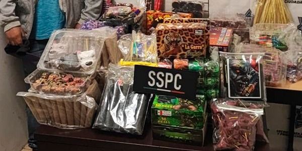 En una acción coordinada y respaldada por inteligencia social, elementos de la Secretaría de Seguridad y Protección Ciudadana (SSPC) lograron decomisar alrededor de 30 kilogramos de pirotecnia que era comercializada de manera clandestina en el estacionamiento de una plaza comercial, ubicada en la zona sur-oriente de la ciudad. Casi la mitad del material decomisado corresponde a productos de alta peligrosidad, como el denominado “Hulk”, “Cara de diablo” entre otros.