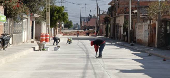 Sobre los avances, detalló que ya se tienen más de 380 metros lineales concluidos, mientras que hay tramos donde se está por colar la carpeta con concreto y otros más ya con el tendido de base.