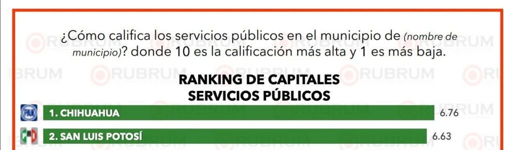 En las mediciones destaca que Galindo Ceballos se ubica en segundo lugar nacional en cuanto a trabajo / desempeño, con 7. 22 puntos, entre todas las ciudades capitales del país. En lo que respecta a Servicios Públicos, el Ayuntamiento de San Luis Potosí también subió al segundo lugar, con 6.63 puntos, sólo por debajo de Chihuahua.