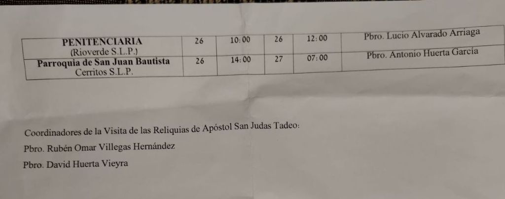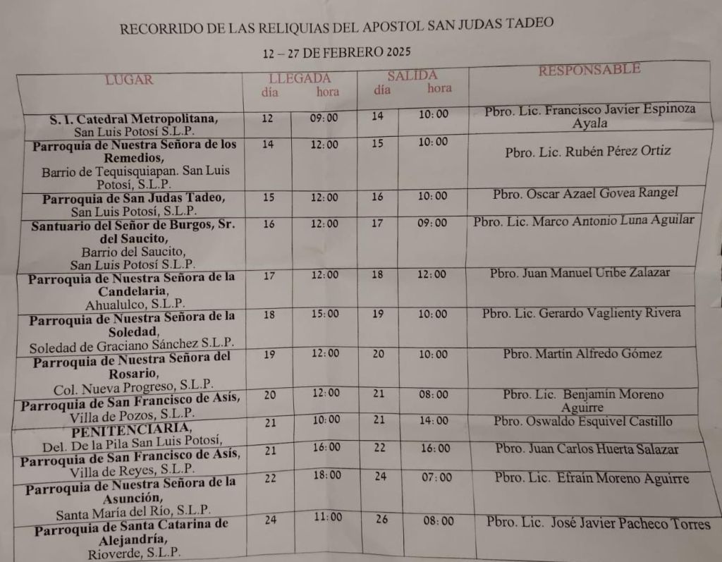 La reliquia de San Judas Tadeo visitará la Arquidiócesis de San Luis Potosí del 12 al 26 de febrero de 2025.