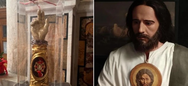 La reliquia es un hueso del brazo de San Judas Tadeo, que se ha venerado en la Basílica de San Salvatore in Lauro en Roma.