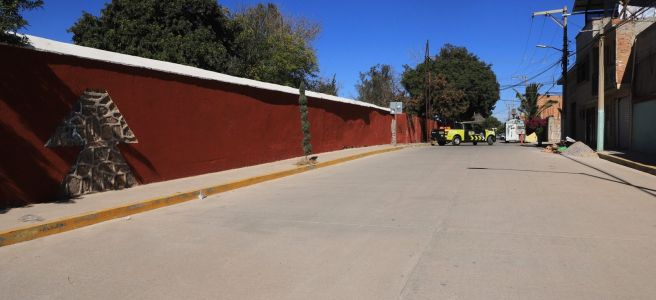 Como parte de la entrega de obras, el Alcalde inauguró la rehabilitación integral de la calle Avestruz, donde se instalaron 80 metros de nueva red de drenaje, 20 descargas sanitarias, tubería de agua potable y tomas domiciliarias, además de más de mil 500 metros cuadrados de pavimento de concreto hidráulico.