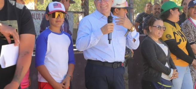 “Yo quiero dejarles un campo de beisbol al 100, porque este espacio es un símbolo para niñas y niños”, apuntó el Alcalde Enrique Galindo ante el presidente de la Liga Pequeña de Beisbol, Adrián Alonso López; niñas y niños que entrenan y participan en las instalaciones, así como entrenadores de esta liga que se desarrolla en el Estadio Infantil Don Roberto García Maldonado.