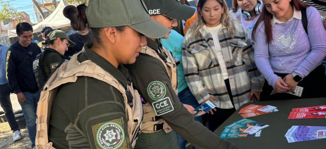 Uno de los momentos más impactantes fue un simulacro de persecución vehicular, donde dos agentes femeninas de la GCE demostraron su destreza en la contención de un presunto delincuente. También, los binomios caninos Draco y Keysi realizaron una demostración de detección de sustancias, subrayando la importancia del trabajo especializado en la seguridad pública.