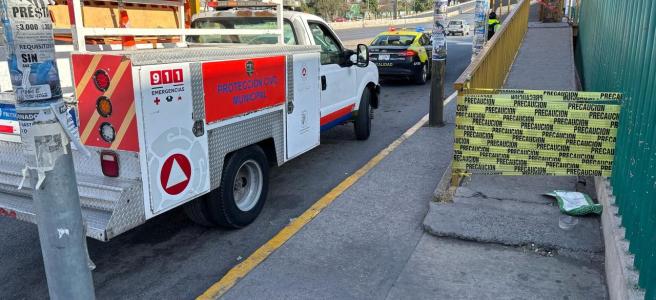 Detalló que personal de la Dirección de Protección Civil Municipal acudió a verificar los daños estructurales, observando un desprendimiento de una estructura de metal de la base de concreto, motivo por el que se determinó clausurar el acceso peatonal para evitar riesgos.