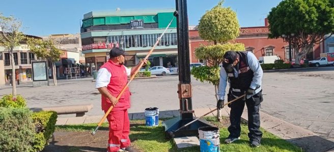 Después de las labores de mantenimiento a calles y banquetas de la ruta procesional, trabajadores del área de Imagen Urbana de la Dirección de Servicios Municipales del Ayuntamiento continúan con la pintura de postes y del mobiliario urbano para que el Centro Histórico, que es uno de los más grandes e importantes del país, pueda ser apreciado en todo su esplendor por las familias potosinas y visitantes que presenciarán el evento.
