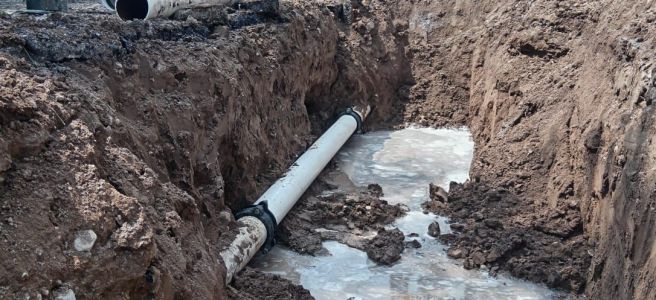 Interapas reparó una fuga de grandes dimensiones en la colonia Industrial San Luis, donde personal del organismo sustituyó cinco metros de red de PVC de seis pulgadas en Eje 118, casi esquina con avenida Salubridad, utilizando maquinaria pesada para su ejecución.