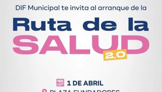 El Sistema Municipal DIF invita a toda la ciudadanía a la presentación oficial de la Ruta de la Salud 2.0, evento que se llevará a cabo el próximo 1 de abril a las 10:30 horas en la Plaza de Fundadores.