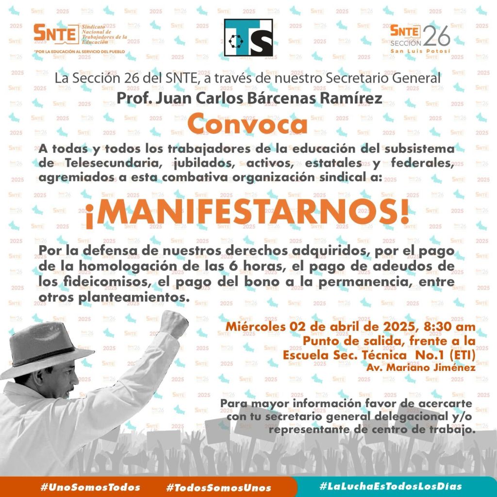 Más de dos mil 500 maestros marchan por las calles en demanda y apoyo a quienes imparten clases en telesecundarias para homologación salarial, pago de adeudos de los fideicomisos, el pago del bono a la permanencia, y otros planteamientos.