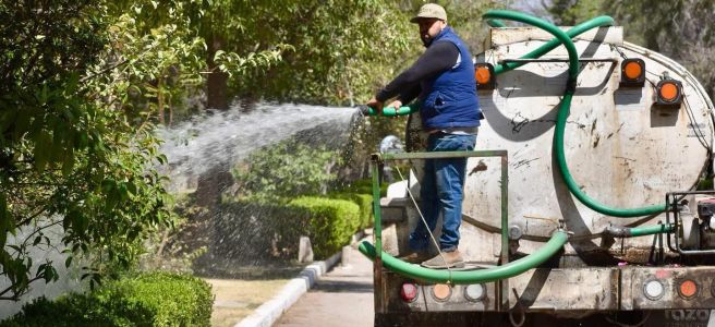 Ante la necesidad de cuidar al máximo el agua disponible por la falta de lluvia y el aumento de la temperatura en los últimos días, el Gobierno Municipal ha intensificado el riego de jardines, camellones y áreas verdes de la ciudad con agua tratada, para que el agua potable sea destinada únicamente al uso doméstico.