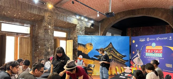 Decenas de chicos acudieron el primer día actividades de los talleres a cargo del Centro Cultural Coreano en México en la sala de Los Cronistas de Palacio Municipal, mismo que se da en el marco del IV Festival Internacional San Luis en Primavera.