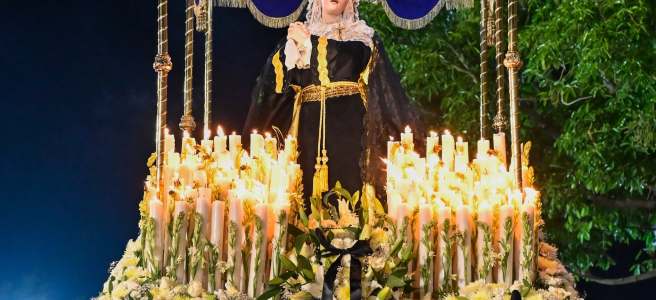 Las tallas, auténticas obras de arte sacro, cobraron vida bajo la tenue luz de los faroles, especialmente el rostro pálido y las lágrimas de cristal de la Virgen Dolorosa, que conmovieron los corazones, evocando el dolor de todas las madres. Su paso solemne fue acompañado por las melancólicas saetas, cantos flamencos que quebraron el silencio con lamentos de profunda fe.