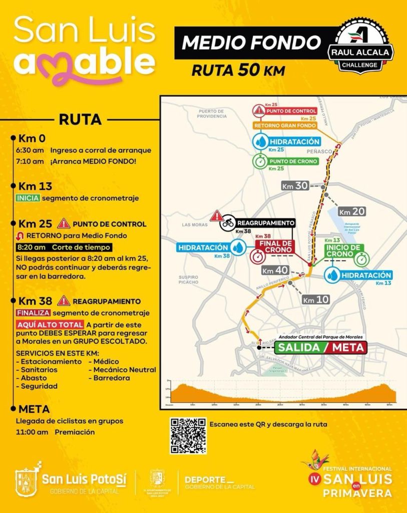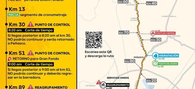 El evento, dividido en dos rutas de 50 y 105 kilómetros, tendrá una salida controlada a las 07:00 horas desde Morales hacia Circuito Potosí y el Camino a Peñasco, en este último punto iniciará la competencia por bloques hacia la delegación de Bocas.