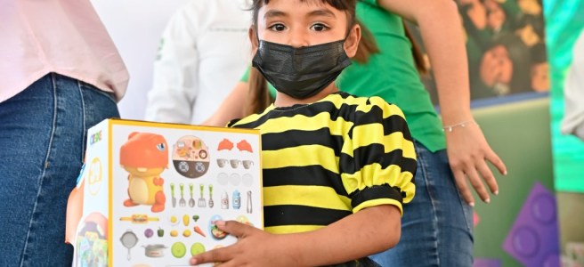 Posteriormente, el Gobernador Gallardo Cardona llamó a niñas y niños de todas las edades a subirse al escenario para bailar y escoger cada quien su juguete.