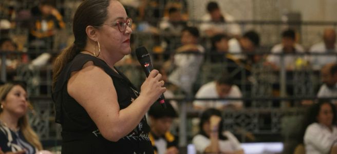 Por su parte Oscar Aldana, especialista en temas de psicología y familia se enfocó en el lenguaje del amor que mamás y papás deben brindar a sus hijas e hijos para evitar una vida libre de violencia; con dinámicas en las que interactuaron las personas presentes, invitó a que sea el adulto quien guíe, oriente, acompañe, establezca límites, pidiéndoles decir “No a los gritos, no a la violencia, no al maltrato”.