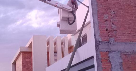 La tarde de este domingo la Dirección de Alumbrado Público del Ayuntamiento de la Capital, retiró un poste de luz en el fraccionamiento Villa Magna, esto luego de que sufriera el impacto de un vehículo y se recargará sobre una vivienda, evitando así mayores riegos para los habitantes de la casa y los transeúntes.