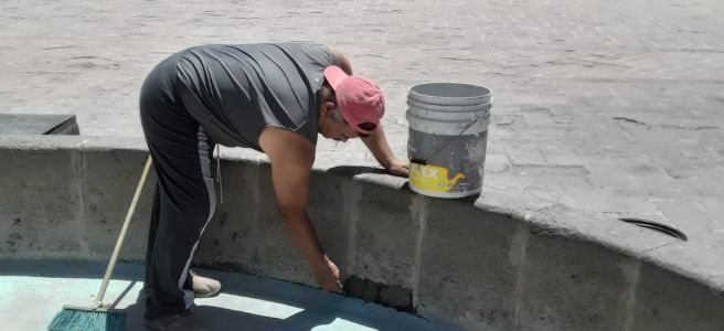 La Dirección de Servicios Municipales informó que de manera especial se reparan las fisuras que se registraban en algunas partes de la fuente, motivo por el cual fue necesario suspender temporalmente su funcionamiento.