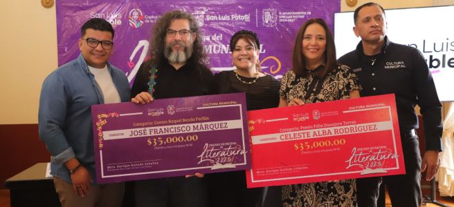 El Ayuntamiento de San Luis Potosí entregó el Premio Municipal de Literatura 2025 a dos autores potosinos, a quienes el Jurado calificador reconoció como los mejores trabajos presentados en la edición de este año.