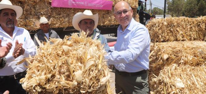 En sesión del Consejo Municipal de Desarrollo Rural Sustentable, el Alcalde Enrique Galindo Ceballos puso en marcha las primeras acciones del programa de impulso a la producción agropecuaria en el municipio, con la entrega de 5 mil pacas de forraje a productores de las Delegaciones La Pila y Bocas. Este esfuerzo forma parte de un esquema integral de beneficios que contempla la entrega de tractores, equipo, insumos y medidas para garantizar el abasto de agua en las comunidades rurales.