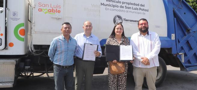 El Presidente Municipal Enrique Galindo Ceballos puntualizó que se firmó un comodato para donar dicha unidad para de esta manera apoyar a ese Municipio para que otorgue con mayor eficiencia la recolección de desechos en beneficio de su población. Asimismo recordó que gracias al sistema actual que está en operación en la Capital, “la flotilla vehicular se renueva cada determinado tiempo, por lo que tenemos la capacidad de apoyar a Municipios cercanos al nuestro, todo a favor de las potosinas y potosinos”.