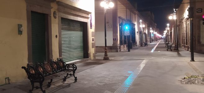 En atención a reportes ciudadanos, técnicos de la Coordinación de Alumbrado Público acudieron al Pasaje Zaragoza para revisar las luminarias y los circuitos eléctricos, pues se informó de una zona oscura entre las calles de Abasolo y Comonfort.