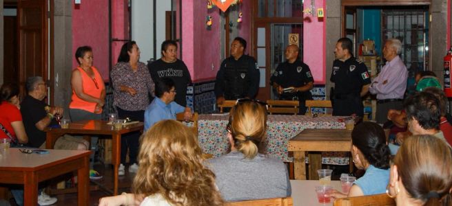El titular de la Secretaría de Seguridad y Protección Ciudadana (SSPC), Comisario Juan Antonio Villa Gutiérrez, encabezó una reunión informativa con habitantes del Centro Histórico, en seguimiento a la solicitud hecha durante la quinta sesión del Consejo de Seguridad para atender las necesidades de mayor vigilancia.