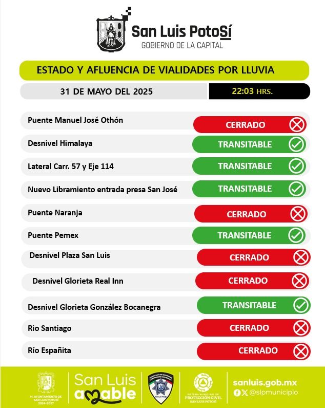 CIERRES POR LLUVIAS