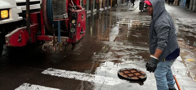 Por instrucción del Alcalde Enrique Galindo, la Unidad de Gestión del Centro Histórico desplegó un camión vactor para desazolvar drenajes en las calles Manuel Mier y Terán, Guajardo y Julián de los Reyes.