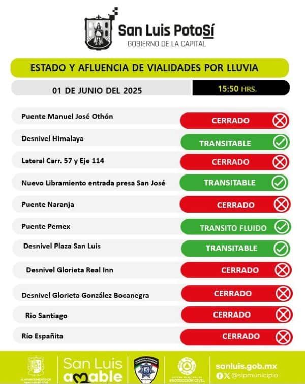 Debido a la lluvia la SSPC de la capital informó que las inundaciones afectan principalmente al centro, norte y poniente de la ciudad, por lo que pidió a los automovilistas extremar precauciones al conducir y evitar circular en pasos a desnivel o zonas con corriente de agua.