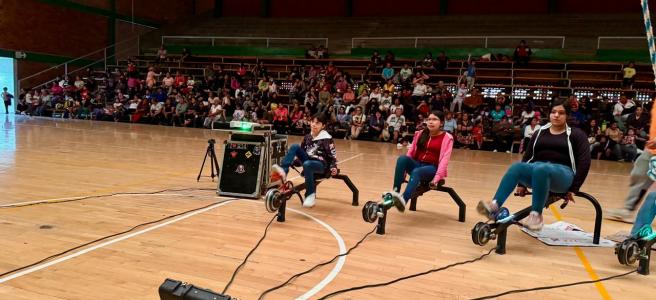 Niñas, niños y adultos pedalearon en un sistema asistido con bicicletas y celdas solares generando la energía necesaria para encender la pantalla y disfrutar juntos del cine al aire libre.