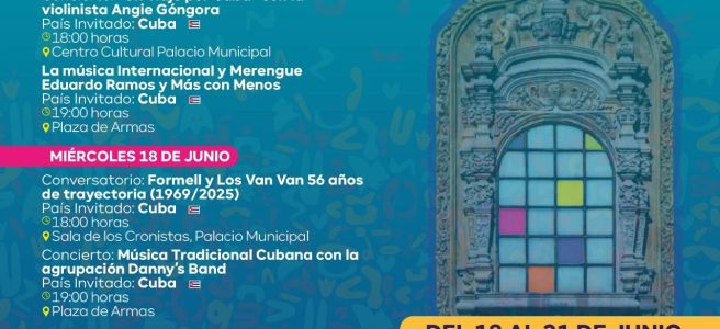 Dijo que dentro del programa destaca la participación de la violinista cubana Angie Góngora que presenta “Un viaje por Cuba” y posteriormente, “La música internacional y merengue”, con Eduardo Ramos y la agrupación “Más con menos”; ambos conciertos se realizarán en el Centro Cultural Palacio Municipal el martes 17 de junio.