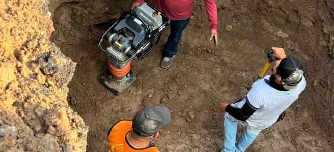En turnos diurnos y nocturnos, las cuadrillas trabajan en la estabilización del terreno mediante el relleno con grava de 1.5 pulgadas, con procesos de compactación y nivelación que garanticen seguridad y durabilidad en la superficie intervenida.
