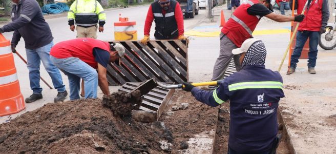 En este punto de la colonia El Aguaje, una de las zonas propensas a encharcamientos e inundaciones, personal de Servicios Municipales, con el apoyo de trabajadores de Interapas y de otras áreas municipales, retiraron las rejillas que permiten el tránsito vehicular, las cuales se encontraban obstruidas por toneladas de lodo y desechos.