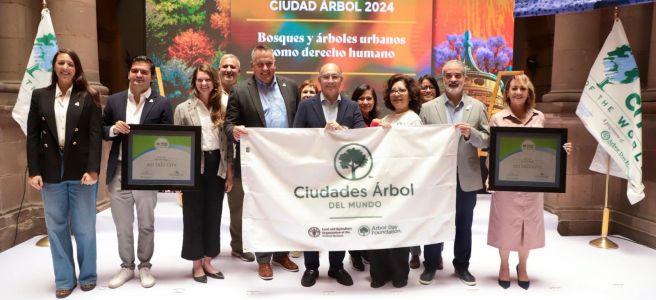 Durante la conferencia, Sophie Plitt, gerente del programa Tree Cities of the World de la Arbor Day Foundation, presentó la primera bandera del programa en idioma español, entregada al municipio de San Luis Potosí, y destacó que el principal objetivo de esta red internacional es “crear conciencia sobre la importancia del arbolado urbano en la calidad de vida”. Elena Graig, especialista argentina en arbolado, resaltó la biodiversidad local, especialmente la yucca potosina, una especie única en el mundo. Por su parte, Ernesto Herrera, Director General de Reforestamos México, reconoció el liderazgo del Alcalde Enrique Galindo por colocar este tema en el centro del debate público a nivel nacional e internacional, desde nuestra ciudad.