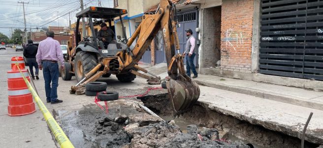 Por instrucciones del Presidente de la Junta de Gobierno de Interapas y Alcalde de la Capital, Enrique Galindo Ceballos, el Organismo Operador de Agua y la Dirección de Obras Públicas del Ayuntamiento de San Luis Potosí, de manera inmediata dieron inicio los trabajos de rehabilitación en la calle de Villerías en la colonia San Ángel, donde por la mañana se detectó un socavón debido al colapso de una línea del drenaje.