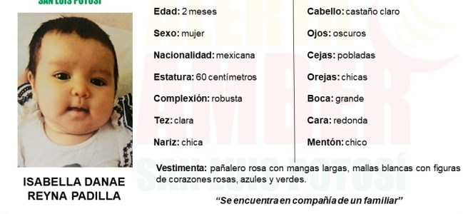 URGENTE LA FISCALÍA SLP EMITIÓ UNA ALERTA AMBER PARA LOCALIZAR A UNA BEBÉ EN LA CAPITAL POTOSINA