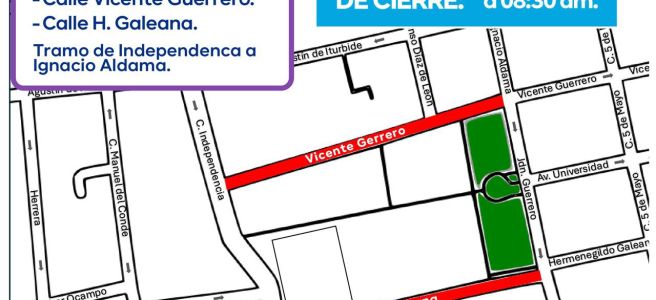 POR FILME SE CIERRA VICENTE GUERRERO Y HERMENEGILDO GALEANA ENTRE 2 30 Y 8 30 DE LA MAÑANA