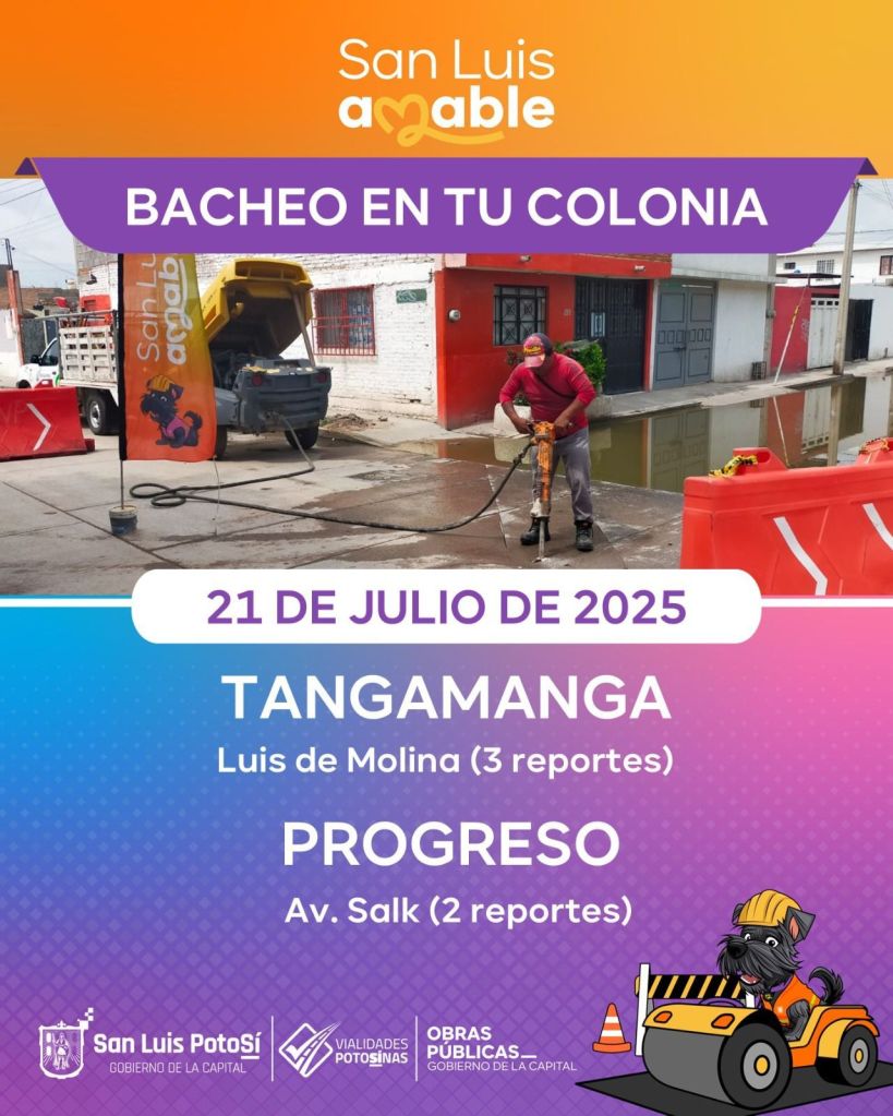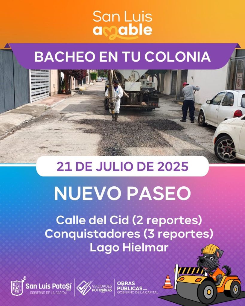 En la colonia Esmeralda se atendieron cinco reportes en la calle Malaquita, mientras que en Graciano Sánchez se trabajó sobre Salvador Nava. En Tangamanga, la acción se concentró en Luis de Molina y en la colonia Progreso se realizaron trabajos sobre avenida Salk, donde se recibieron dos solicitudes. También en Nuevo Paseo, se realizaron labores en la calle del Cid, Conquistadores y Lago Hielmar, donde se acumularon varios reportes ciudadanos.