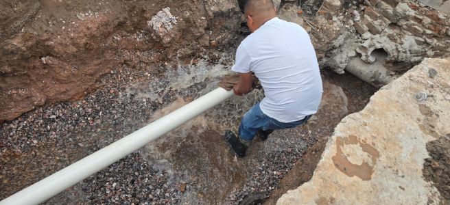 Como parte de la obra, se realiza la conexión de un nuevo tubo de 4 pulgadas en la esquina de Pedro Montoya y Eje Vial, así como la reconexión de tomas domiciliarias, lo que permitirá optimizar el suministro en viviendas y comercios cercanos al Mercado República, una zona de alta actividad comercial en el primer cuadro de la ciudad.