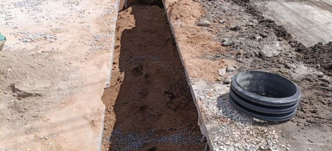 Interapas continúa con los trabajos de rehabilitación sanitaria en calle 5 de Mayo y lateral de Salvador Nava, donde ya se concluyó la instalación de 40 metros lineales de tubería PEAD de 15 pulgadas de diámetro.