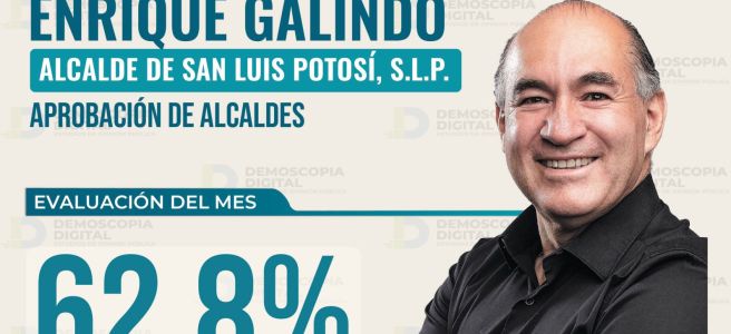 Los estudios de opinión realizados por Demoscopía Digital, apuntan a Enrique Galindo Ceballos como el alcalde con mayor nivel de aprobación en el estado de San Luis Potosí, con un 62.8 por ciento de opiniones favorables de la población.