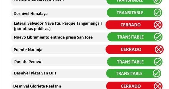 VIALIDADES CERRADAS POR LA LLUVIA