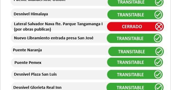 A través de la Dirección General de Policía Vial, se mantiene presencia y recorridos preventivos en pasos a desnivel, registrando solamente cierre vial en Río Españita este lunes por la mañana.