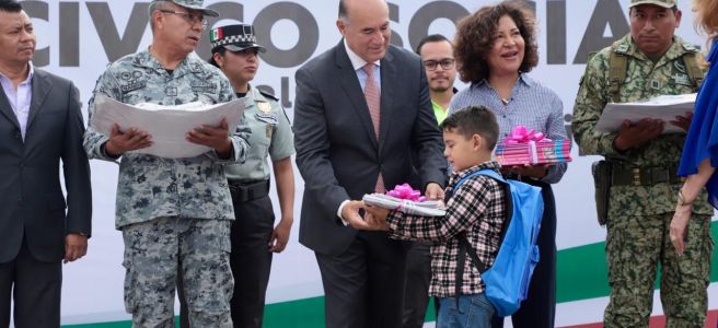 En el inicio de actividades, el Alcalde capitalino encabezó el Lunes Cívico Social en la Plaza de Los Fundadores para rendir honores a los simbolos patrios, junto con la presidenta del DIF Municipal, Estela Arriaga Márquez y el coordinador estatal de la Guardía Nacional, General Brigadier Gaudencio Ramos Jiménez, donde se resaltó la importancia de impulsar no sólo mejores prácticas docentes, sino también fomentar el respeto a los valores cívicos.