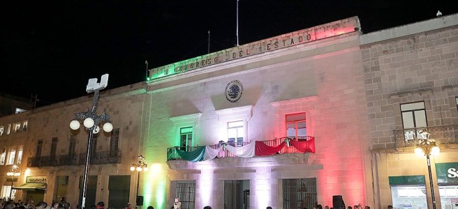 ENCIENDEN LA LUZ PATRIA EN EL PALACIO LEGISLATIVO DEL JARDÍN HIDALGO