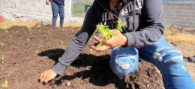 Agregó que durante este proceso, las y los participantes han dado seguimiento al crecimiento de las plantas, realizando labores de cuidado como despuntes para lograr una mayor floración.
