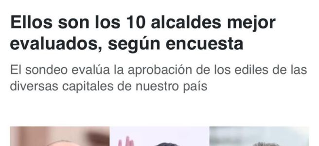 En la segunda posición se encuentra Marco Antonio Bonilla, alcalde de Chihuahua, con un respaldo del 63.7 por ciento, mientras que en el tercer lugar aparece Javier Díaz González, de Saltillo, con un 62.8 por ciento de aprobación, de acuerdo con los resultados de la medición.