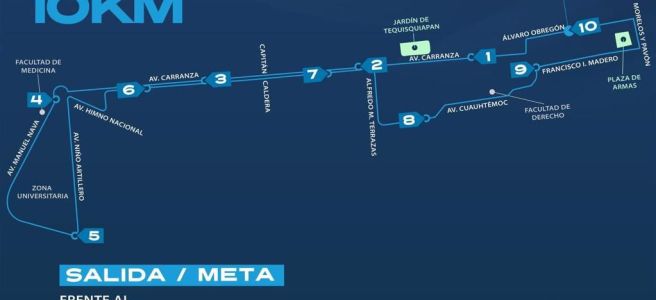 De acuerdo con el plan operativo para esta justa deportiva, la ruta para el recorrido de los 5 kilómetros será: como punto de salida Álvaro Obregón, continuarán hacia Venustiano Carranza, a la altura de Capitán Caldera retornarán por la misma avenida de Carranza con meta en Plaza Fundadores frente a la institución bancaria Banorte.