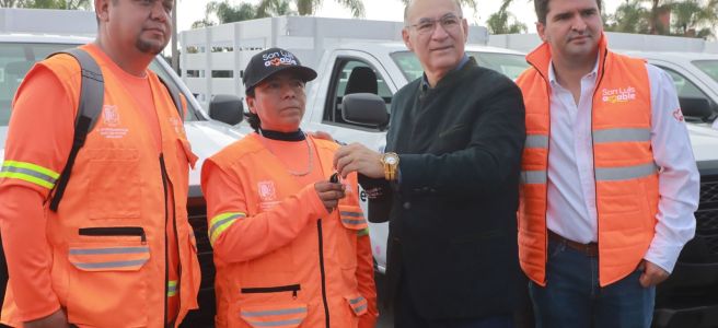 En un acto simbólico encabezado por el Alcalde Enrique Galindo Ceballos, se hizo la entrega masiva de vehículos, uniformes y equipamiento operativo a diversas áreas del ayuntamiento de San Luis Potosí, como Servicios Municipales, Gestión Ecológica y Manejo de Residuos, Unidad de Gestión del Centro Histórico (UGCH), Comercio y la Secretaría de Seguridad y Protección Ciudadana.
