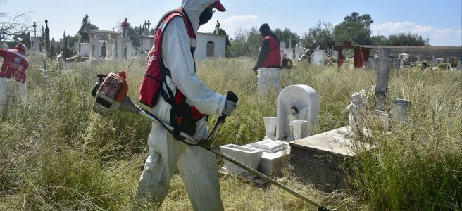 El Alcalde Enrique Galindo Ceballos encabezó este lunes la jornada número 377 del programa Capital al 100, en el Panteón Municipal del Saucito, donde se realizaron labores de limpieza general, mantenimiento y rehabilitación de áreas comunes, en preparación para el Día de Muertos.